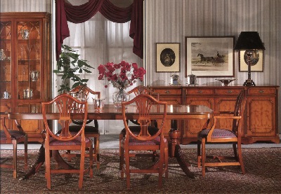 Große Auswahl an ausziehbaren Esstischen und Esszimmerstühlen, Sideboards und Vitrinen (2- bis 6-türig, gerade oder mit Vorsprung) in Eibe, Mahagoni & Walnuss sowie Sonderanfertigungen nach Ihren Vorstellungen