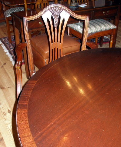 z.B.Runder Ausziehtisch, Mahagoni, handpoliert (107cm auf ca. 140cm) PLUS 4x "Hour Glass" (Sanduhr) Stühle PLUS 2x "Hour Glass" (Sanduhr) Sessel